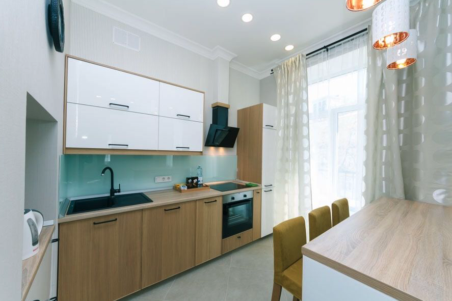 Трехкомнатная уютная, светлая квартира VIP уровня расположена в самом центре Киева, на улице Крещатик 21. Квартира выполнена в светлых тонах с дизайнерскими решением. В апартаментах две отдельные спальни с двуспальными кроватями, кухня-студио с раскладным двуспальным диваном. Всего 4 спальных места (2+2). Ванная комната оборудована ванной и душевой кабиной. Также в апартаментах два открытых больших балкона для курения с великолепным видом на центр Киева.