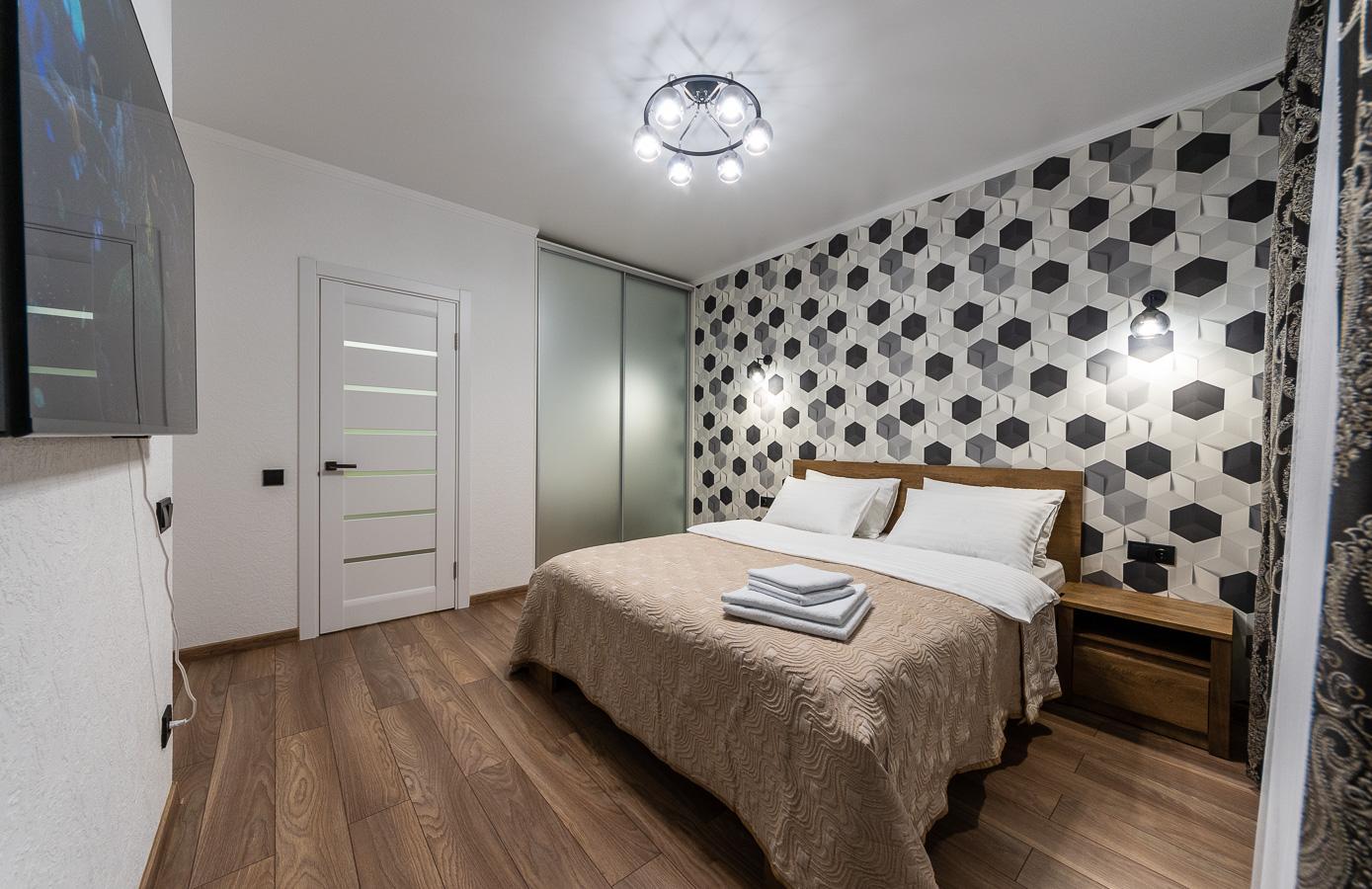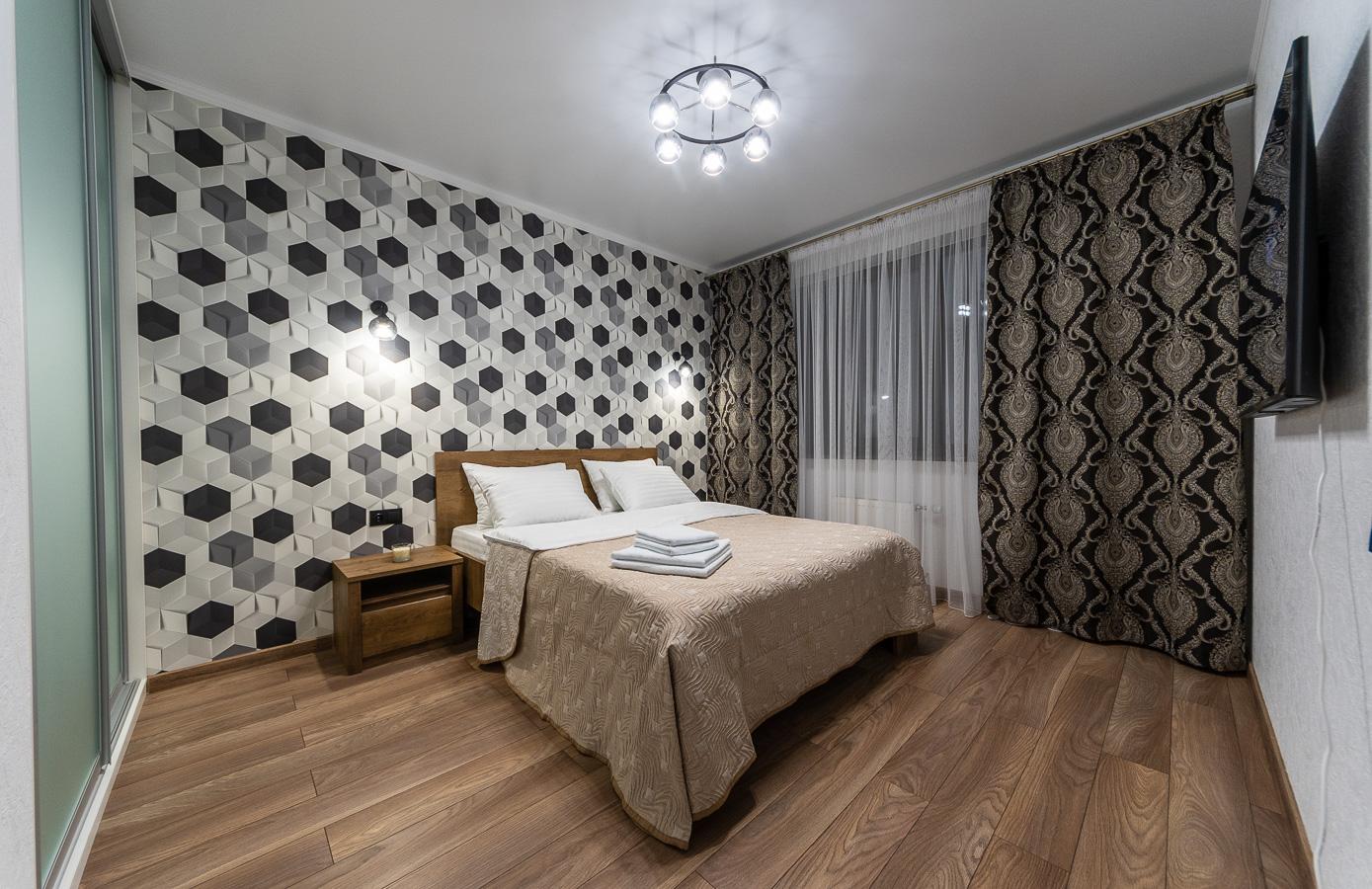 A stylish VIP-class one-bedroom apartment is available for short-term rent in the престижный Obolon district of Kyiv, located at Obolonskyi Avenue 1/3. The apartment is situated in the modern residential complex ObolonSky, just 150 meters from Obolon metro station.
