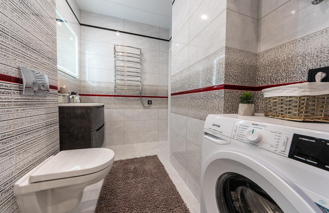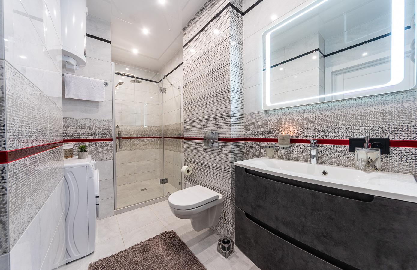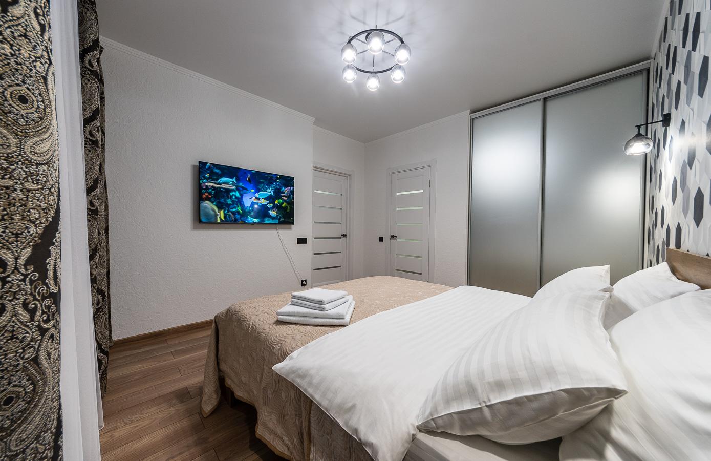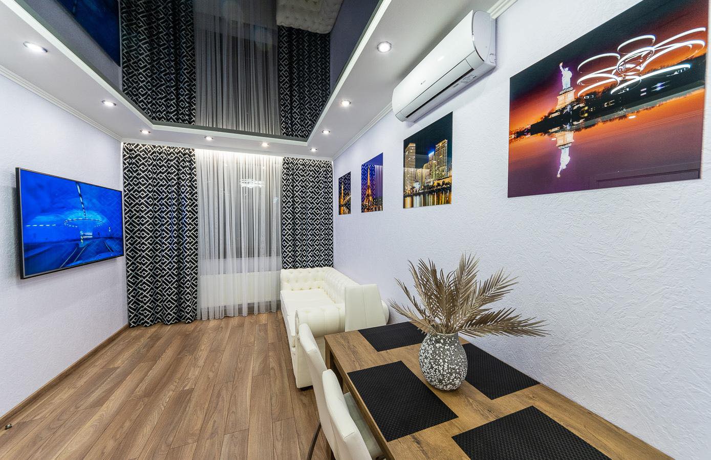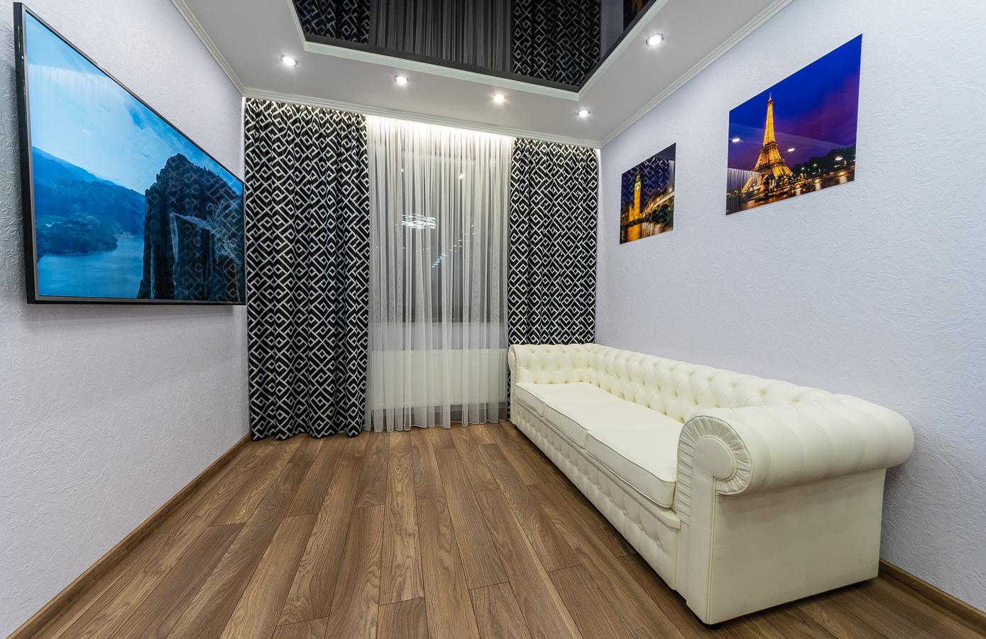 The apartment features a bright, modern interior with дизайнерский renovation using high-quality materials. Every detail is carefully designed: mirrored ceiling, modern lighting, elegant decor, and a cozy atmosphere that reflects a premium lifestyle.