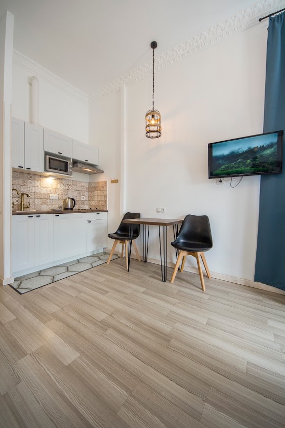 The apartment is located in the historic part of Kiev, near the places of interest of the capital of Ukraine, on the main street of Kiev – Khreschatyk. Across the street you will find Bessarabska Square with many shops and cafes, Mandarin Plaza Shopping Center, BC Parus, as well as Arena Shopping Center, which houses the Pinchuk Art Center of Contemporary Art, night clubs, shops, restaurants, cafes, a 24-hour supermarket.
